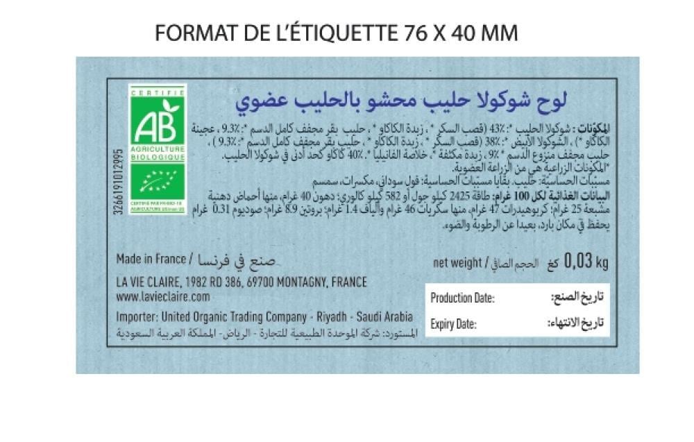استمتع ببار شوكولاتة الحليب لا في كلير العضوية، محشو بشوكولاتة بيضاء كريمية بنكهة غنية وملمس ناعم معبأ في ألواح فردية 30 جرام، مثالي كوجبة خفيفة فاخرة أو هدية حلوة لمحبي النكهات الكريمية عضوي 100%، يجمع بين شوكولاتة الحليب (40 في المئة كاكاو) وحشوة الشوكولاتة البيضاء لتجربة لذيذة